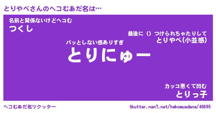 | 男性向けラノベタイトル風あだ名 | 『とりやべの憂鬱』 |