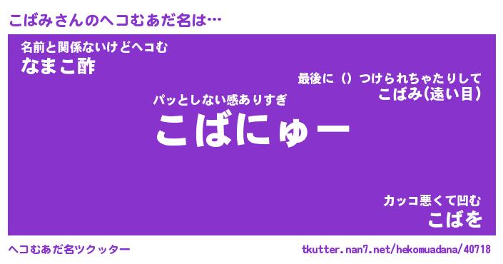 | 2回繰り返すあだ名 | 『こばこば』『ここばば』『ころころ』 |