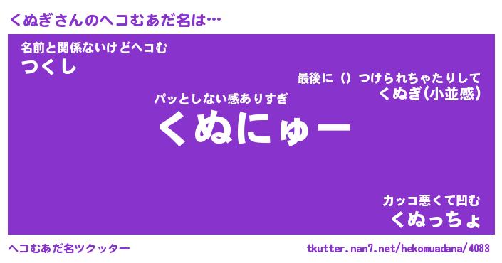 | ファンタジー風あだ名 | 『クヌフェル』『エターナルクヌギー』 |