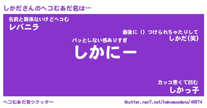 | 意味不明あだ名 | 『ペロリンしかだ』『しかだフォーエバー』 |