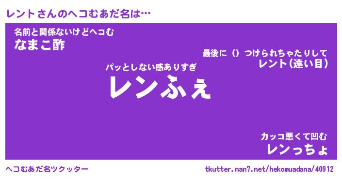 | ポケモン風あだ名 | 『レンチュウ』『レントダネ』 |
