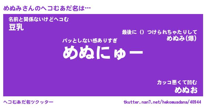 | 2回繰り返すあだ名 | 『めぬめぬ』『めめぬぬ』『のろのろ』 |