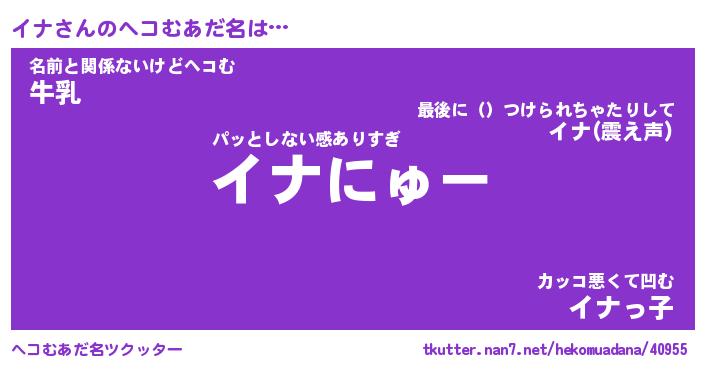 | 男性向けラノベタイトル風あだ名 | 『イナの憂鬱』『ノーゲーム・ノーイナ』 |