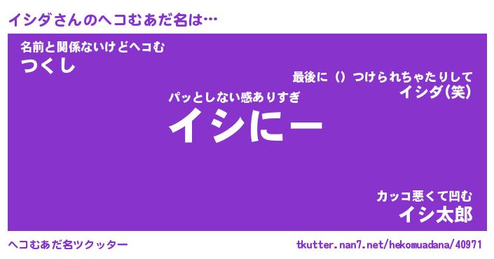 | 2回繰り返すあだ名 | 『イシイシ』『イイシシ』『いそいそ』 |