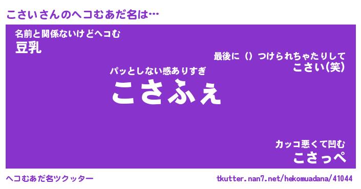 | 恥ずかしいあだ名 | 『プリティーこさい』『こさっちょ』 |