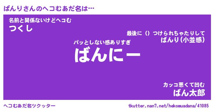 | ヒーロー風カッコイイあだ名 | 『スーパーバンリ』『ウルトラばんりマン』 |