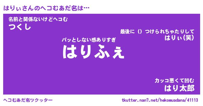 | ファンタジー風あだ名 | 『ハリフェル』『エターナルハリィー』 |