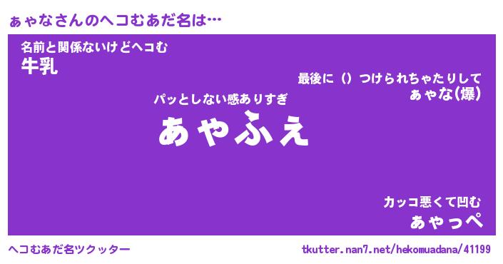 | ヒーロー風カッコイイあだ名 | 『スーパーァャナ』『ウルトラぁゃなマン』 |