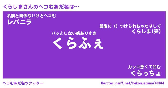 | 意味不明あだ名 | 『ペロリンくらしま』『永久保存くらしま』 |