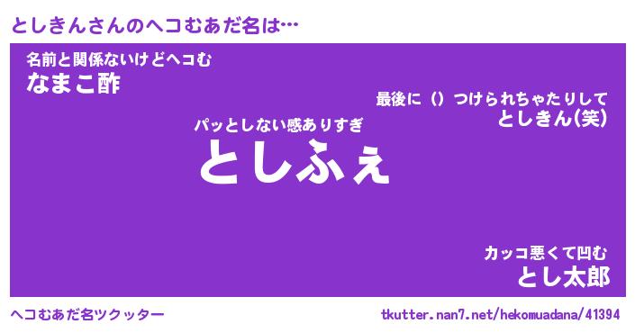 | 意味不明あだ名 | 『ペロリンとしきん』『永久保存としきん』 |