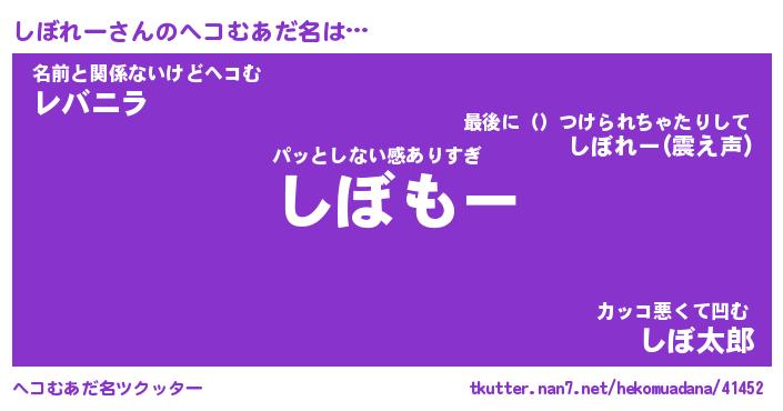 | 2回繰り返すあだ名 | 『しぼしぼ』『ししぼぼ』『けろけろ』 |