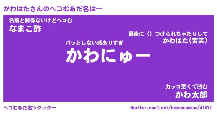 | ヒーロー風カッコイイあだ名 | 『スーパーカワハタ』『幻影騎士カワ』 |