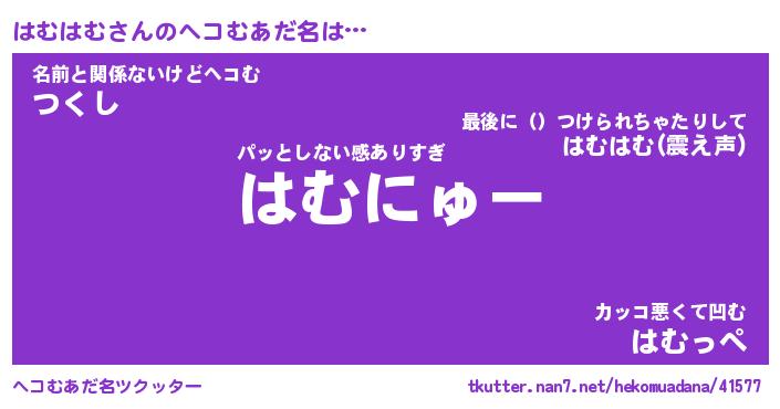 | 2回繰り返すあだ名 | 『はむはむ』『ははむむ』『うねうね』 |