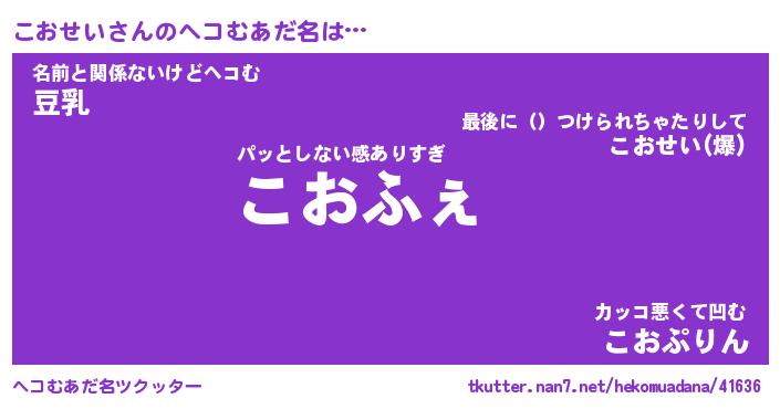 | ファンタジー風あだ名 | 『コオフェル』『エターナルコオセイー』 |