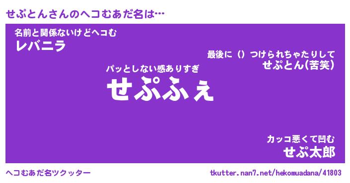| 男性向けラノベタイトル風あだ名 | 『せぷとんの憂鬱』 |