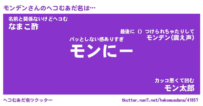 | 男性向けラノベタイトル風あだ名 | 『モンデンの憂鬱』 |