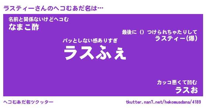| ファンタジー風あだ名 | 『ラスフェル』『エターナルラスティーー』 |