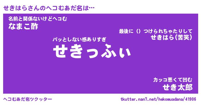 | 胡散臭い通販商品みたいなあだ名 | 『億万長者になれる霊験あらたかなお札…その名も「せきはら」』 |