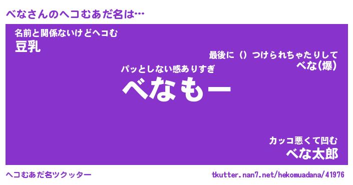 | ポケモン風あだ名 | 『ベナチュウ』『ベナダネ』『ヒベナ』 |