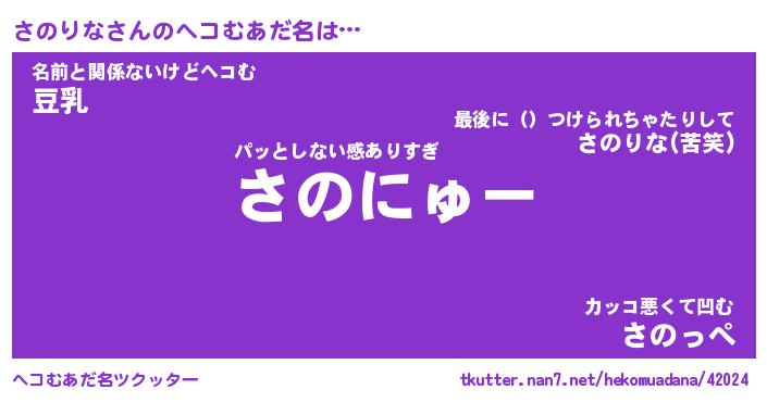 | 意味不明あだ名 | 『ペロリンさのりな』『永久保存さのりな』 |