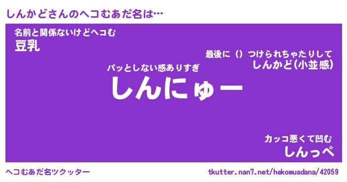 | 意味不明あだ名 | 『ペロリンしんかど』『永久保存しんかど』 |