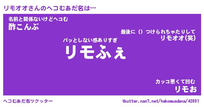 | 意味不明あだ名 | 『ペロリンリモオオ』『永久保存リモオオ』 |