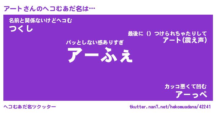 | ファンタジー風あだ名 | 『アーフェル』『エターナルアートー』 |