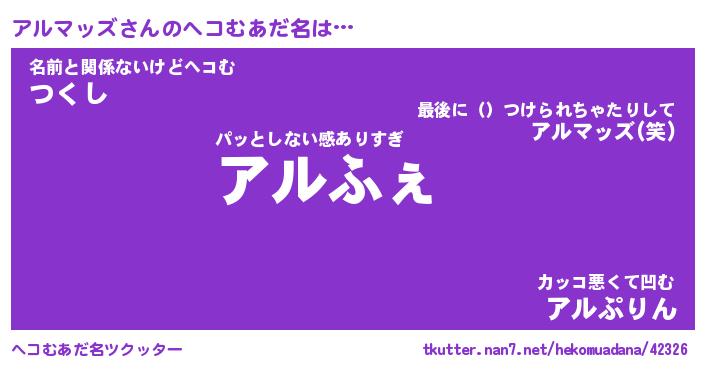 | ファンタジー風あだ名 | 『アルフェル』『エターナルアルマッズー』 |