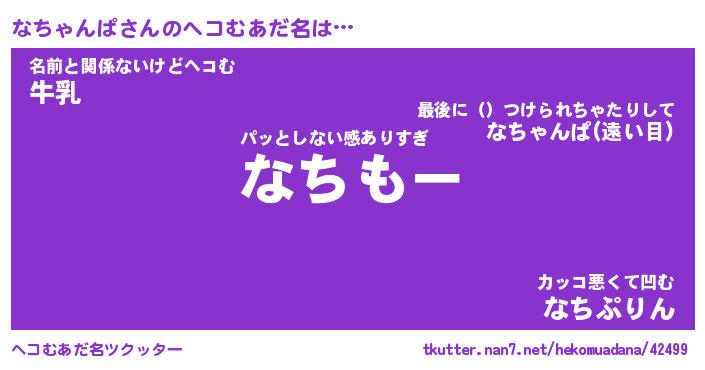 | 男性向けラノベタイトル風あだ名 | 『なちゃんぱの憂鬱』 |