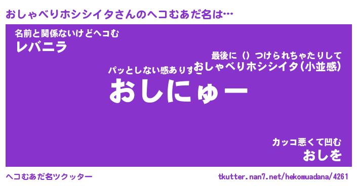 | ヒーロー風カッコイイあだ名 | 『スーパーオシャベリホシシイタ』 |