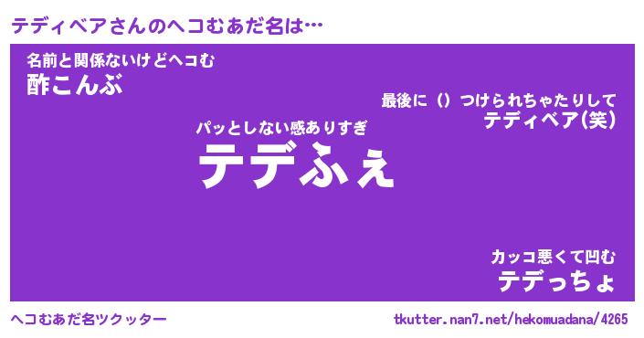| ファンタジー風あだ名 | 『テデフェル』『エターナルテディベアー』 |