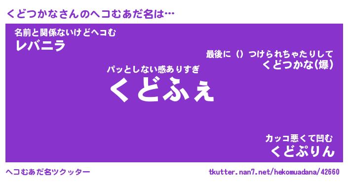 | ファンタジー風あだ名 | 『クドフェル』『エターナルクドツカナー』 |