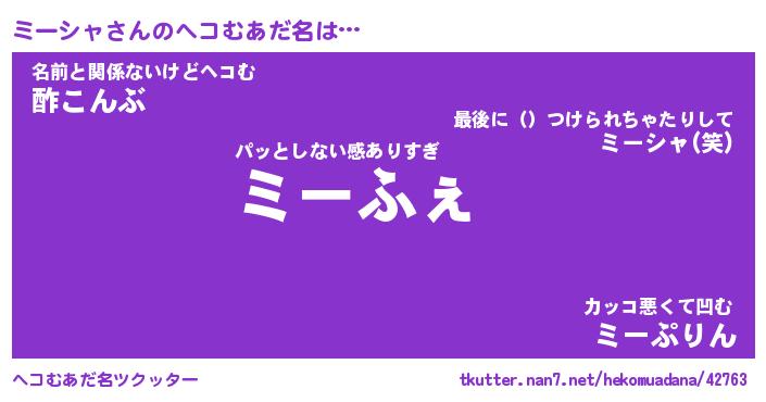 | ファンタジー風あだ名 | 『ミーフェル』『エターナルミーシャー』 |