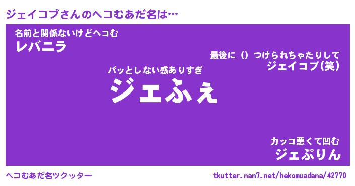 | ファンタジー風あだ名 | 『ジェフェル』『エターナルジェイコブー』 |