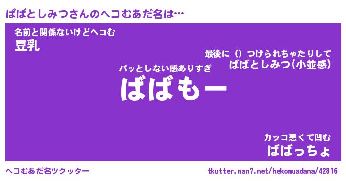 | ヒーロー風カッコイイあだ名 | 『スーパーババトシミツ』『魔戒騎士ババ』 |