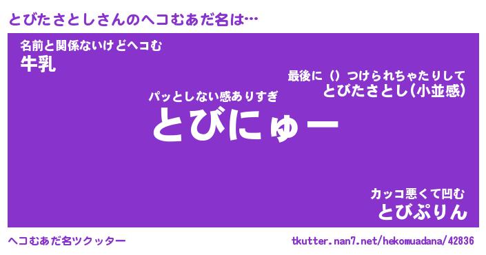 | ポケモン風あだ名 | 『トビチュウ』『トビタダネ』 |