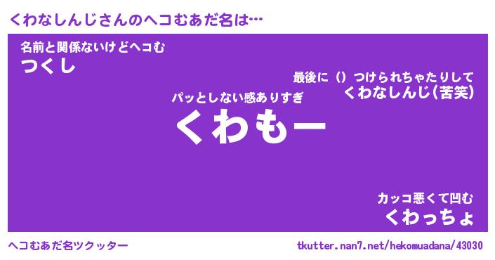 | 恥ずかしいあだ名 | 『プリティーくわなしんじ』『くわっちょ』 |