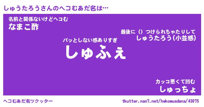 | 意味不明あだ名 | 『ペロリンしゅうたろう』 |