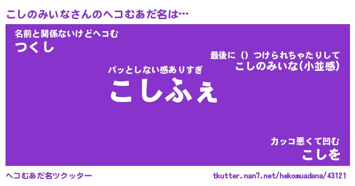 | 男性向けラノベタイトル風あだ名 | 『コシノミイナアートオンライン』 |
