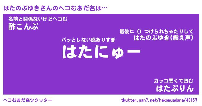 | ヒーロー風カッコイイあだ名 | 『スーパーハタノブユキ』『幻影騎士ハタ』 |