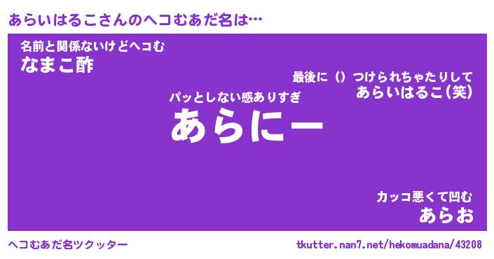 | ヒーロー風カッコイイあだ名 | 『スーパーアライハルコ』『幻影騎士アラ』 |