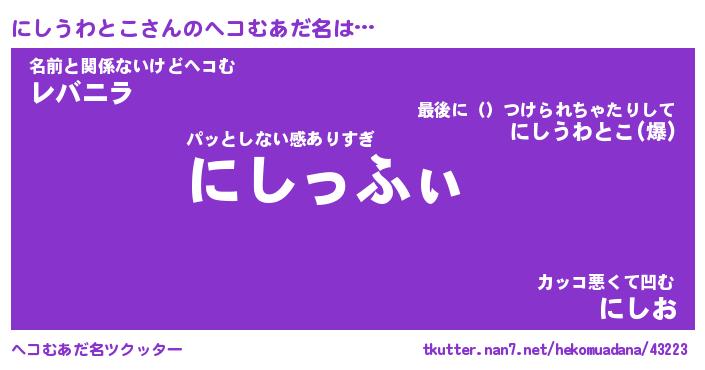 | 2回繰り返すあだ名 | 『にしにし』『ににしし』『ぐいぐい』 |
