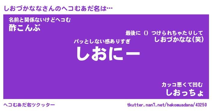 | 意味不明あだ名 | 『ペロリンしおづかなな』 |