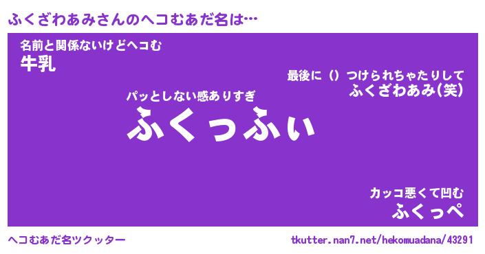 | ヒーロー風カッコイイあだ名 | 『スーパーフクザワアミ』『天弓騎士フク』 |