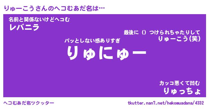 | 2回繰り返すあだ名 | 『りゅりゅ』『りりゅゅ』『ねとねと』 |