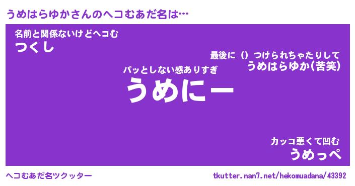 | ヒーロー風カッコイイあだ名 | 『スーパーウメハラユカ』『暗黒騎士ウメ』 |