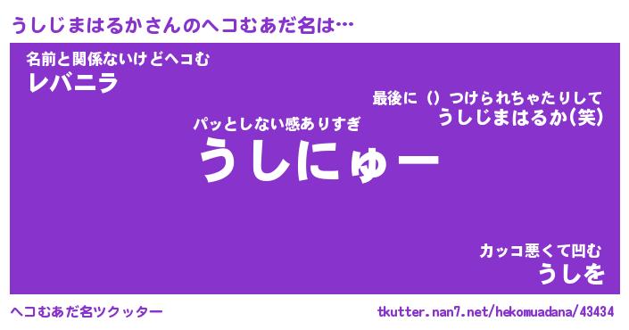 | 恥ずかしいあだ名 | 『プリティーうしじまはるか』『うしちん』 |