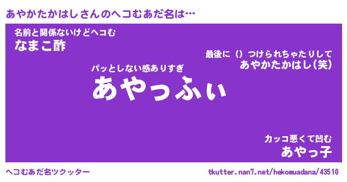 | ヒーロー風カッコイイあだ名 | 『スーパーアヤカタカハシ』 |