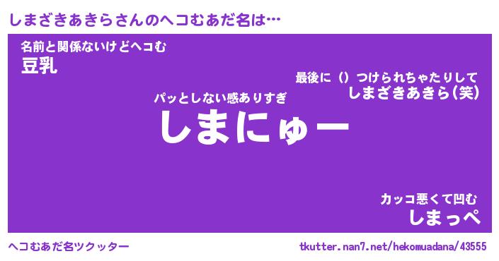| 意味不明あだ名 | 『ペロリンしまざきあきら』 |