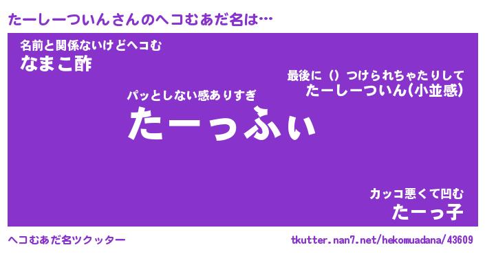 | 恥ずかしいあだ名 | 『プリティーたーしーついん』『たーちん』 |